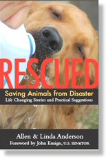 to purchase RESCUED: Saving Animals from Disaster, Life Changing Stories and Practical Suggestions autographed by Allen and Linda Anderson from the Angel Animals Network Online Bookstore.